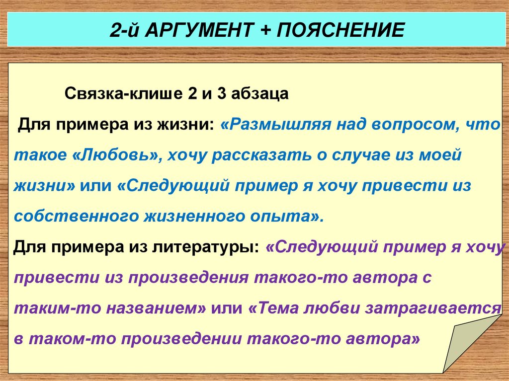 2-й АРГУМЕНТ + ПОЯСНЕНИЕСвязка-клише 2 и 3 абзаца