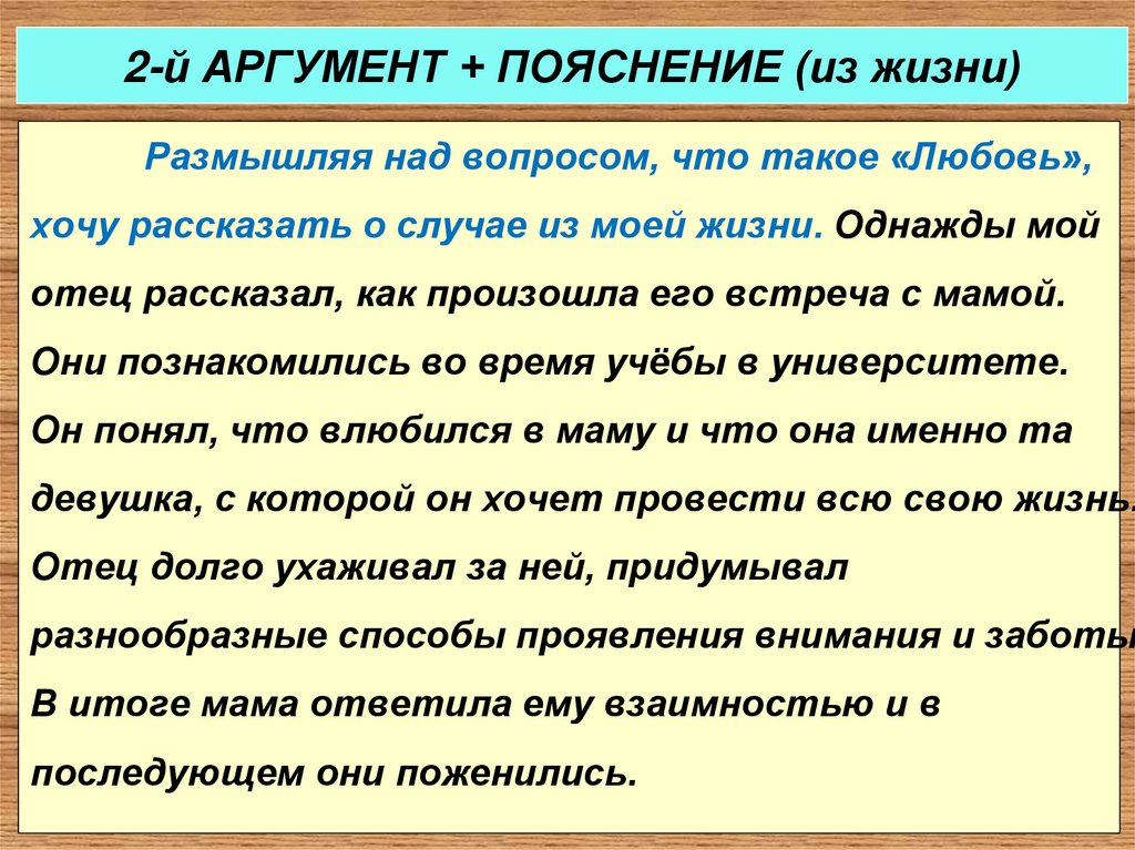 2-й АРГУМЕНТ + ПОЯСНЕНИЕ (из жизни)Размышляя над вопросом, что такое «Любовь»,