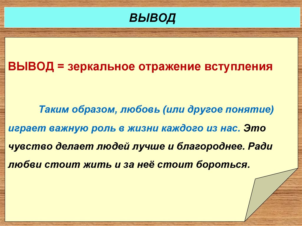 ВЫВОДВЫВОД = зеркальное отражение вступления