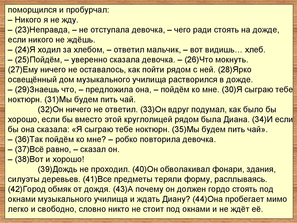 окон? (2)Идёт невидимый мелкий дождь. (3)А из освещённых