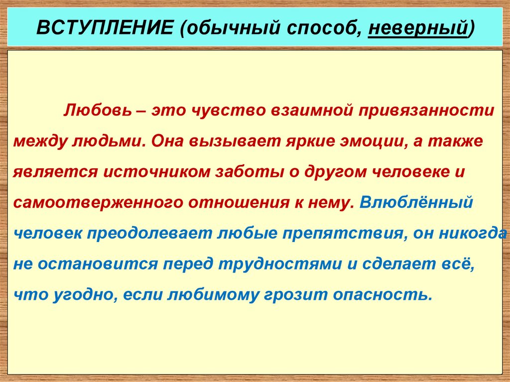 ВСТУПЛЕНИЕ (обычный способ, неверный)Любовь – это чувство взаимной привязанности