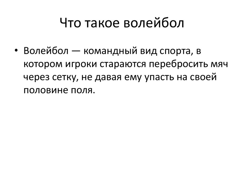 Что такое волейбол• Волейбол — командный вид спорта, в