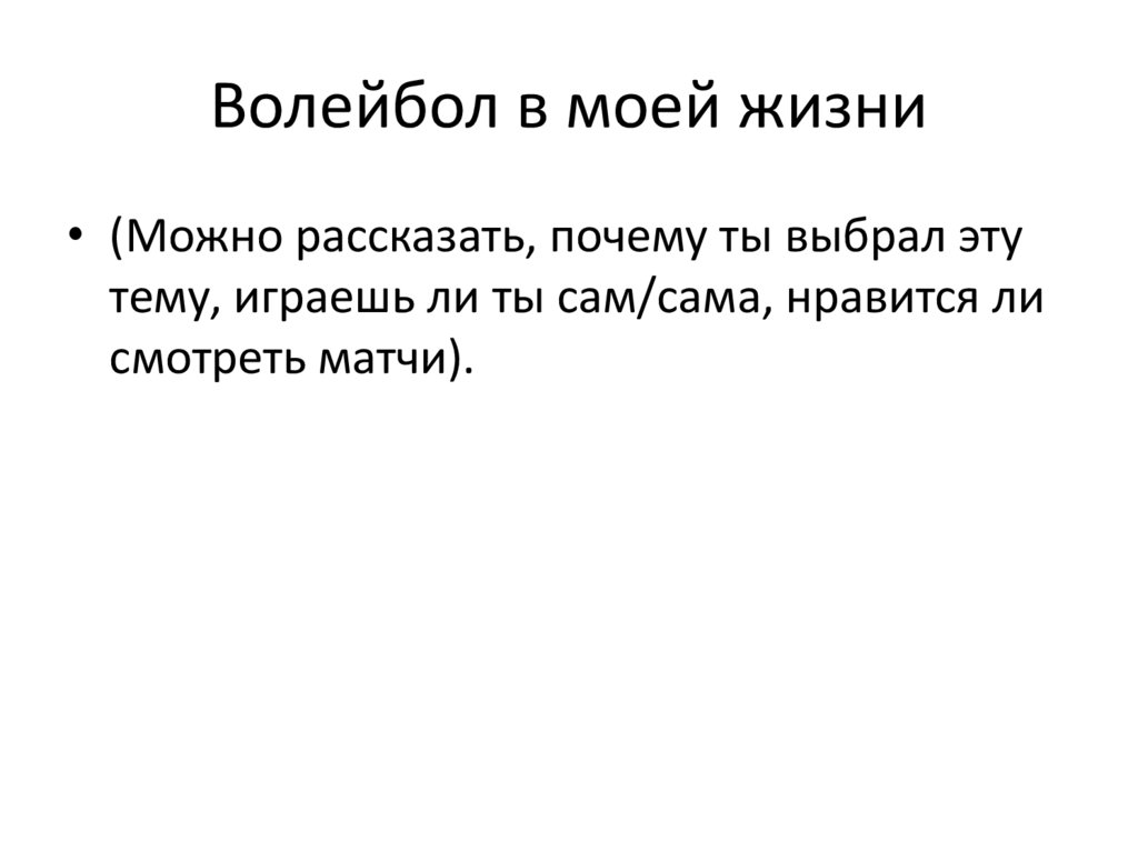 Волейбол в моей жизни• (Можно рассказать, почему ты выбрал эту