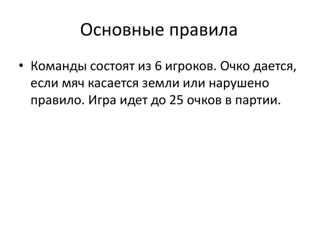 Основные правила• Команды состоят из 6 игроков. Очко дается,
