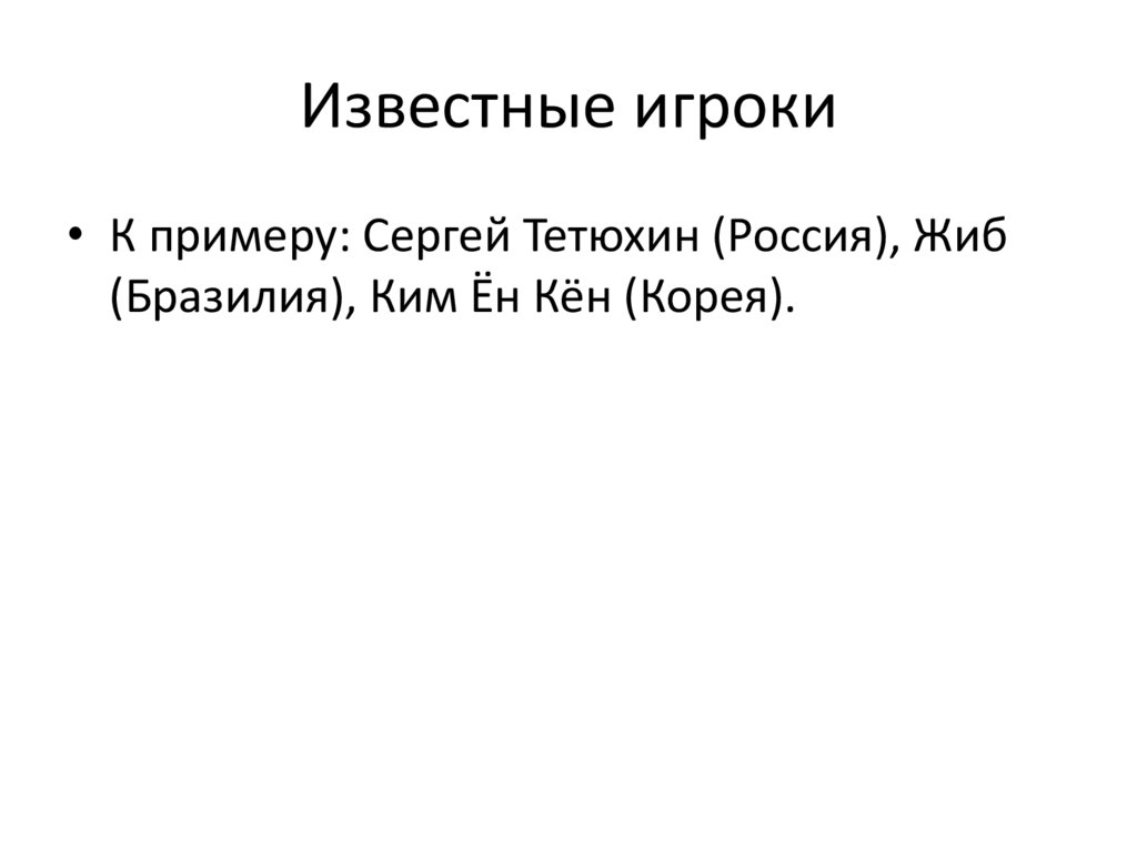 Известные игроки• К примеру: Сергей Тетюхин (Россия), Жиб