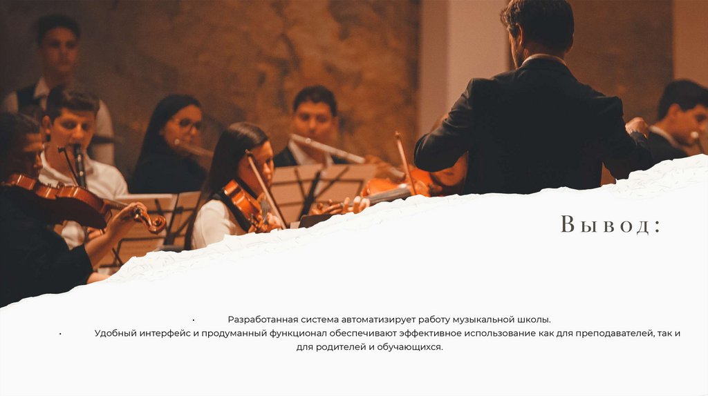 Вывод:Разработанная система автоматизирует работу музыкальной школы.