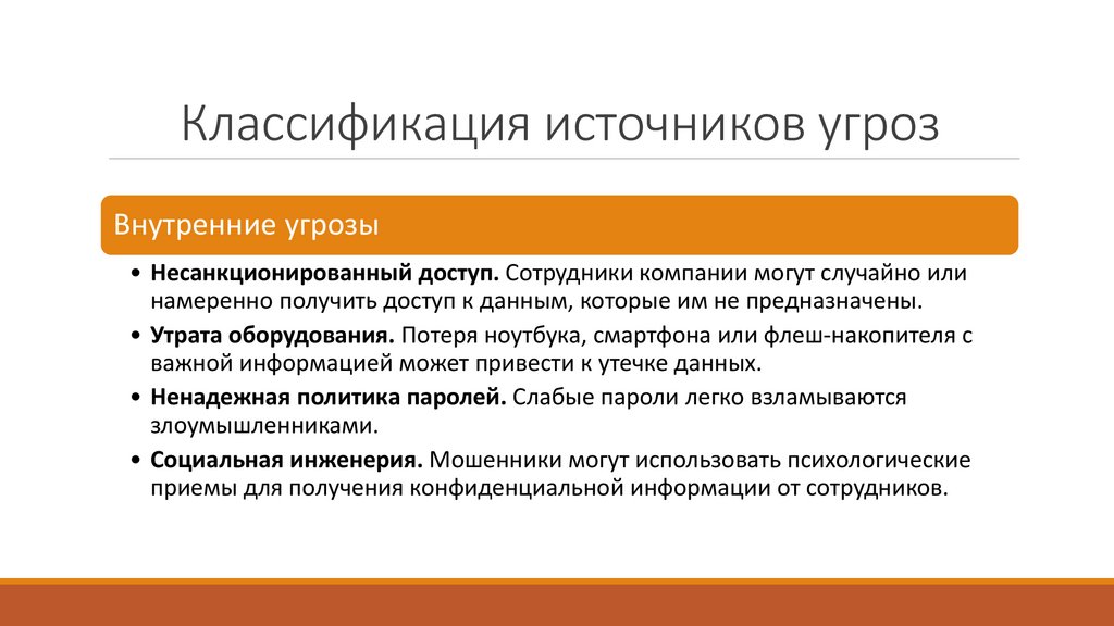 • Несанкционированный доступ. Сотрудники компании могут случайно или