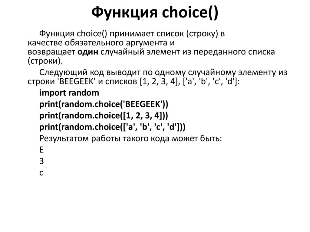 11. Функция choice()