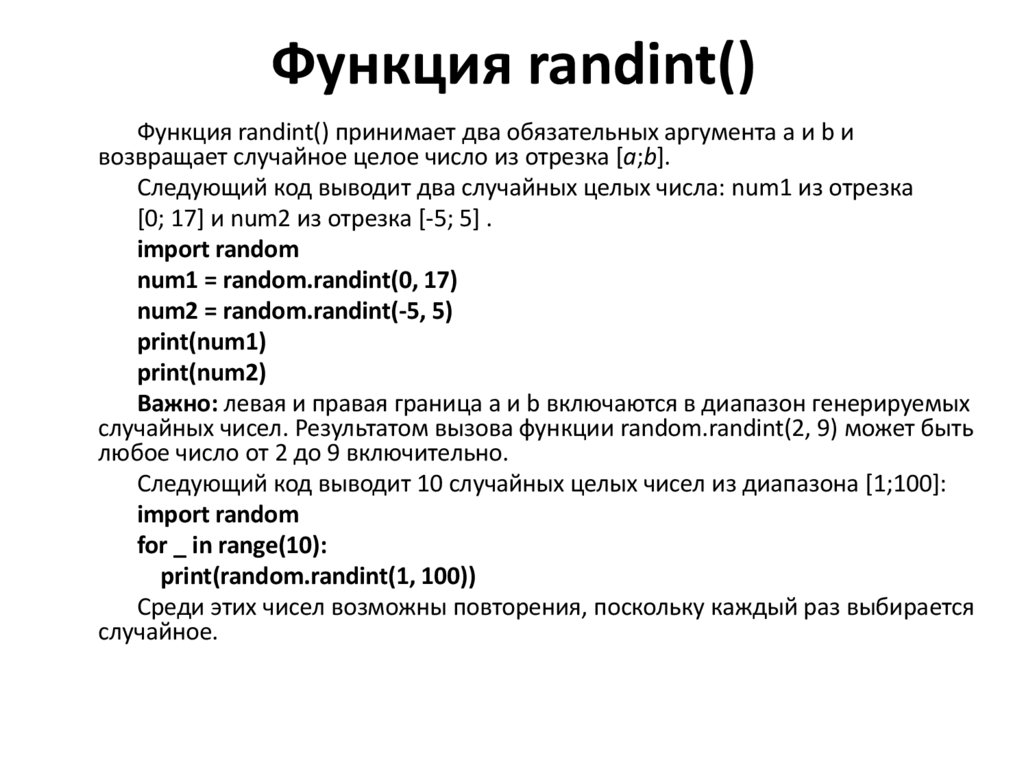 3. Функция randint()