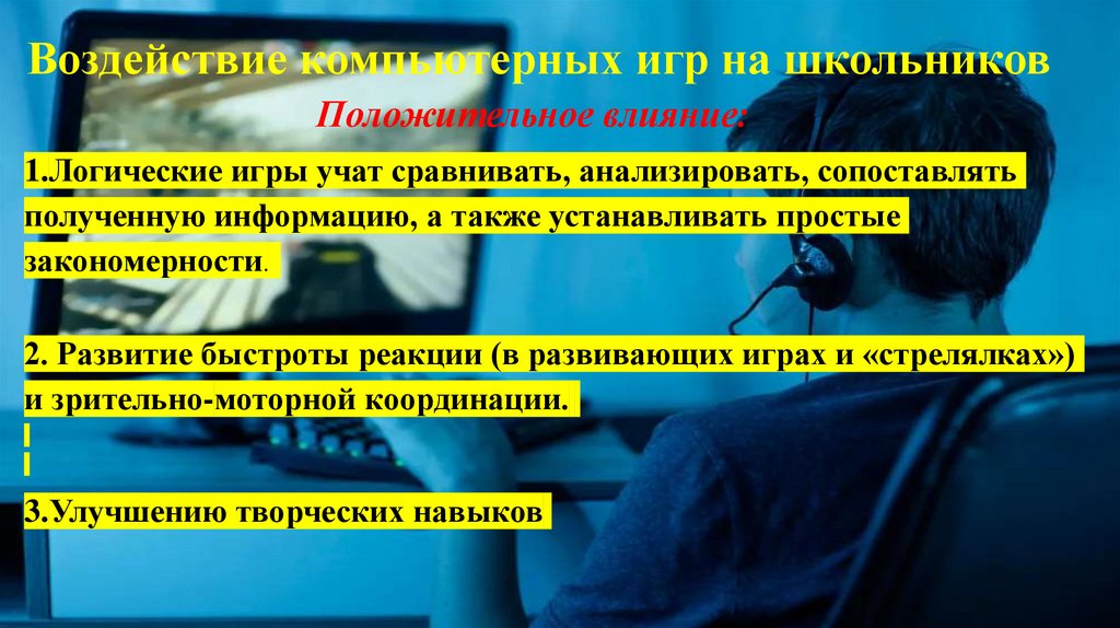 Воздействие компьютерных игр на школьниковПоложительное влияние: