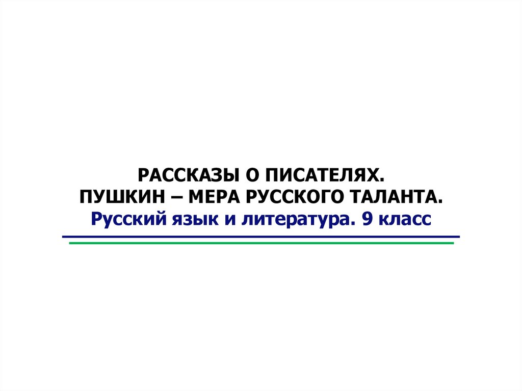 РАССКАЗЫ О ПИСАТЕЛЯХ.ПУШКИН – МЕРА РУССКОГО ТАЛАНТА.