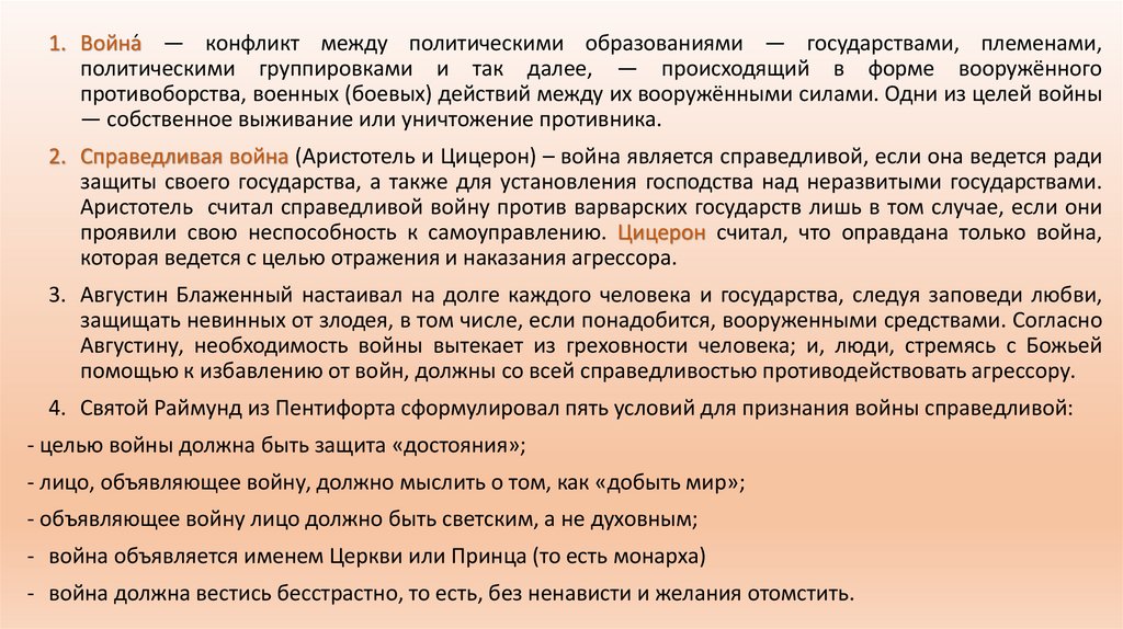 2. Справедливая война (Аристотель и Цицерон) – война является справедливой, если она ведется ради