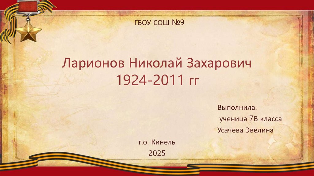 ГБОУ СОШ №9Ларионов Николай Захарович
