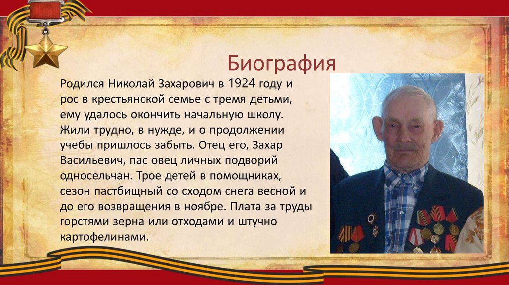 БиографияРодился Николай Захарович в 1924 году и