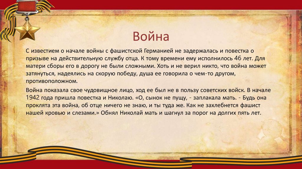 призыве на действительную службу отца. К тому времени ему исполнилось 46 лет. Для