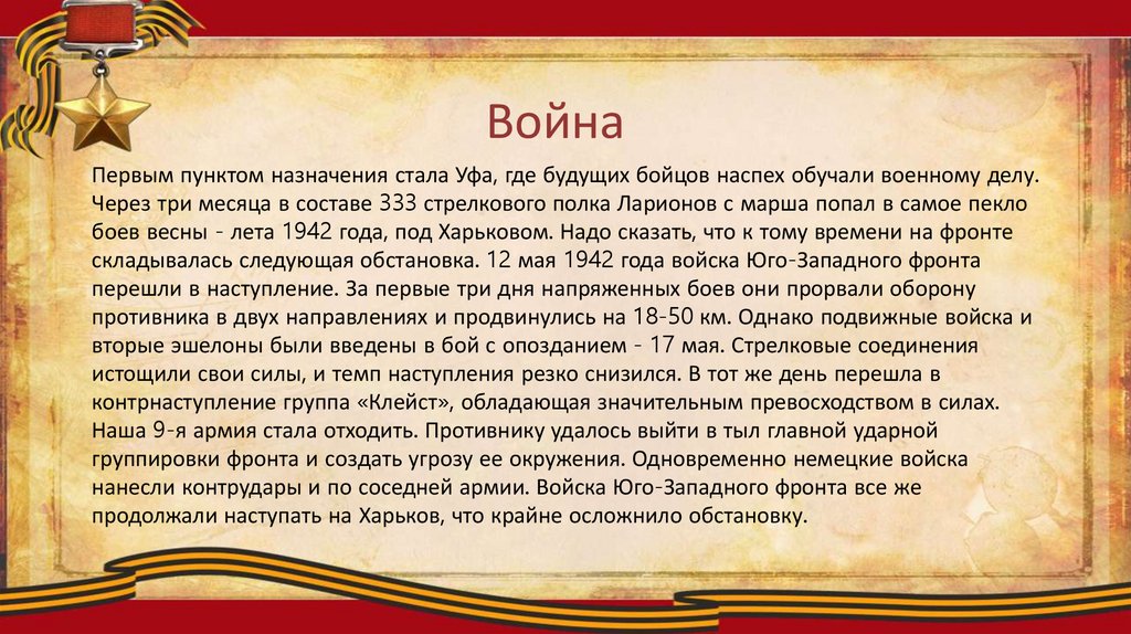 Через три месяца в составе 333 стрелкового полка Ларионов с марша попал в самое пекло