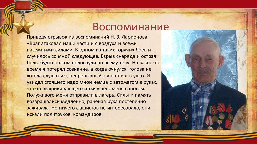 ВоспоминаниеПриведу отрывок из воспоминаний Н. З. Ларионова: