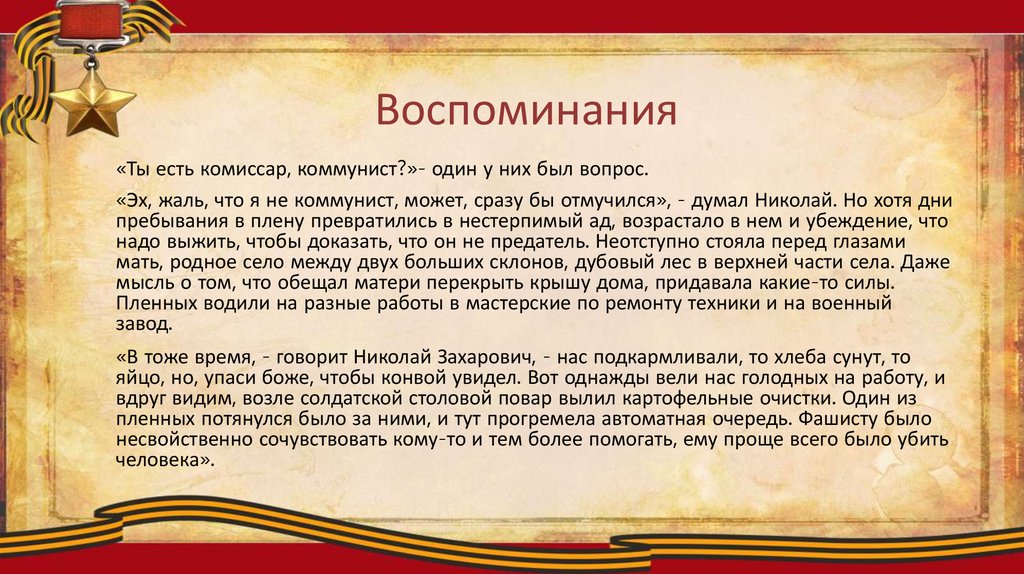 Воспоминания«Ты есть комиссар, коммунист?»- один у них был вопрос.