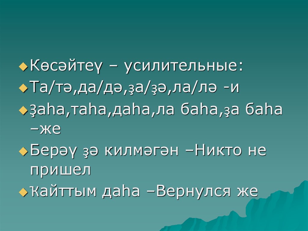 Иң,бик,бигерәк,үтә,тас,шыр,шауочень