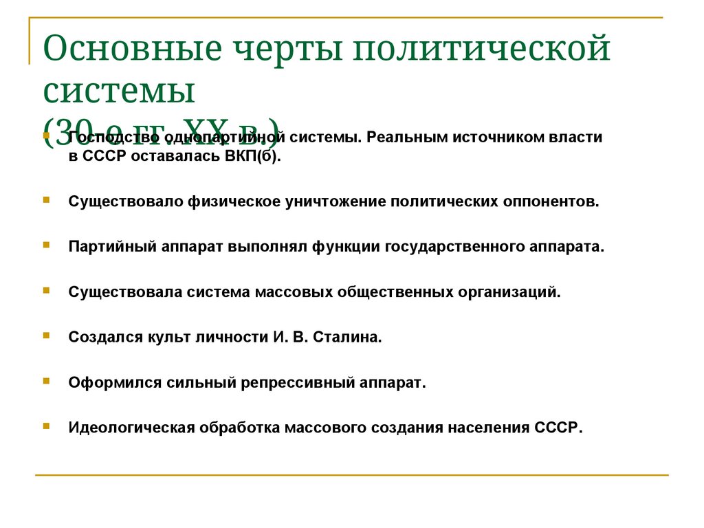2. Основные черты политической системы (30-е гг. ХХ в.)
