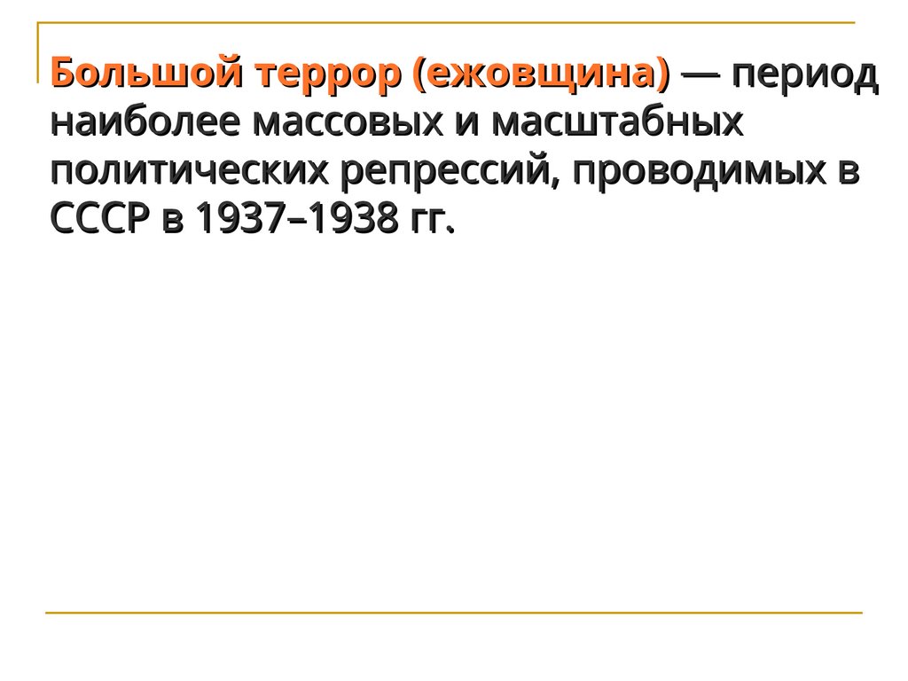Большой террор (ежовщина) — периоднаиболее массовых и масштабных