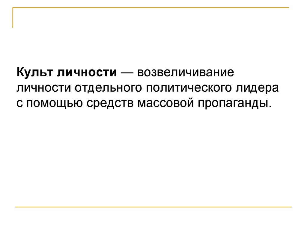Культ личности — возвеличиваниеличности отдельного политического лидера