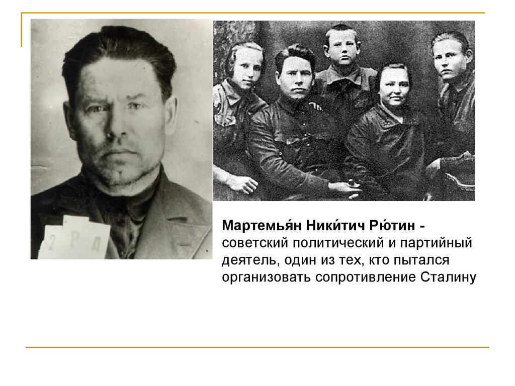 Мартемья́ н Ники́ тич Рю́ тин советский политический и партийныйдеятель, один из тех, кто пытался