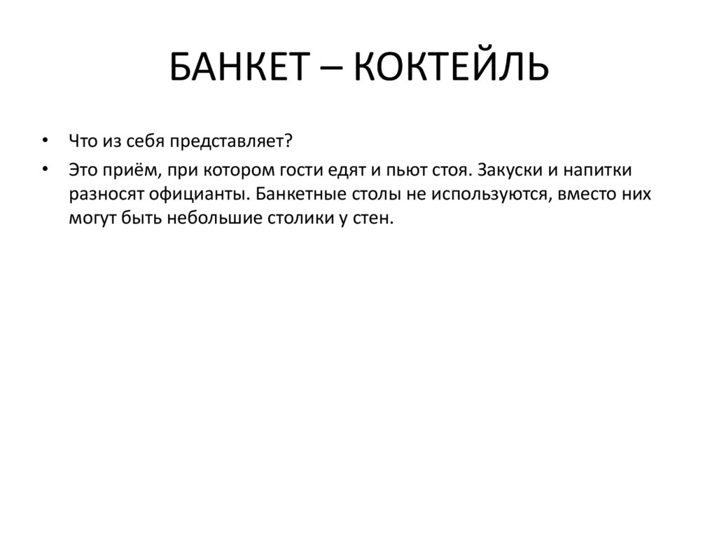 БАНКЕТ – КОКТЕЙЛЬ• Что из себя представляет?