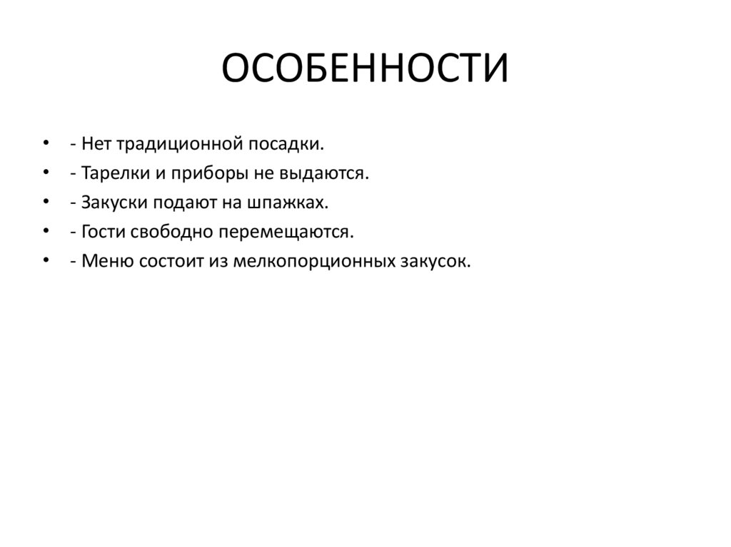 • Это приём, при котором гости едят и пьют стоя. Закуски и напитки