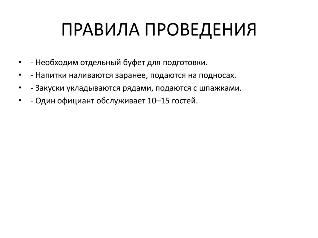 ПРАВИЛА ПРОВЕДЕНИЯ- Необходим отдельный буфет для подготовки.