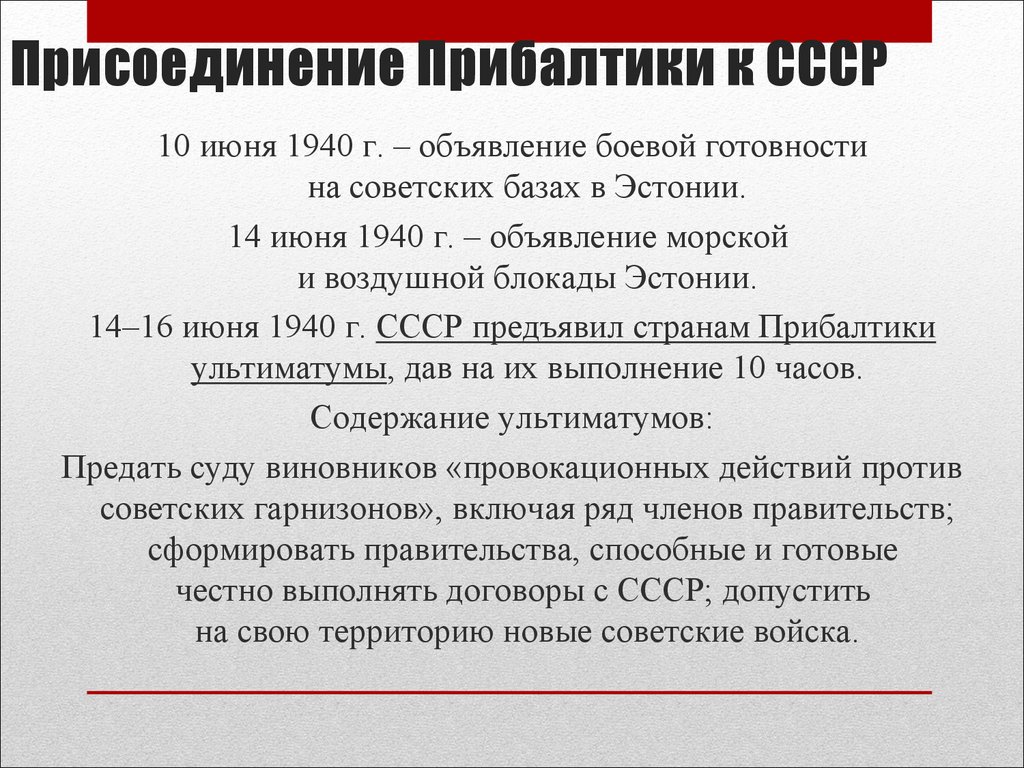 26. Присоединение Прибалтики к СССР