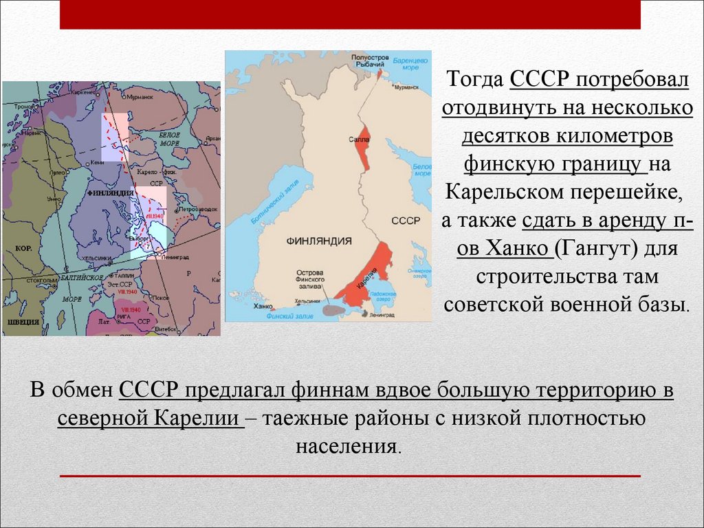 В обмен СССР предлагал финнам вдвое большую территорию в