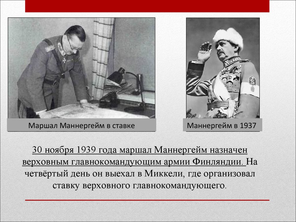 30 ноября 1939 года маршал Маннергейм назначен