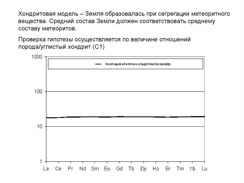 Хондритовая модель – Земля образовалась при сегрегации метеоритноговещества. Средний состав Земли должен соответствовать среднему