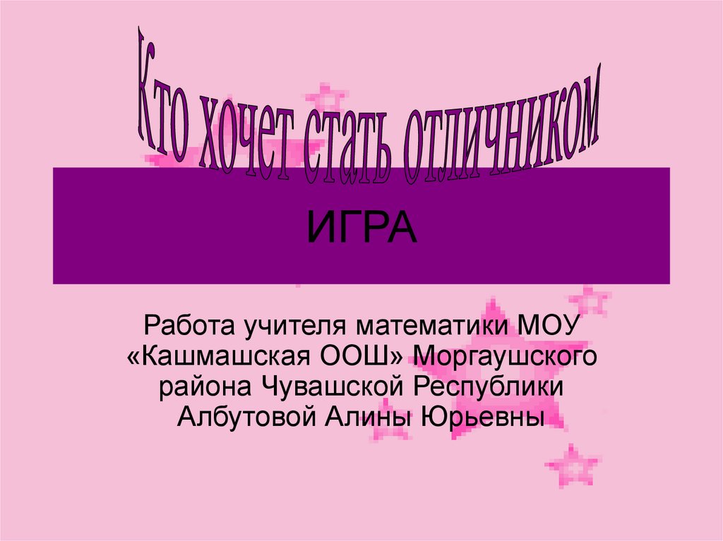 Работа учителя математики МОУ«Кашмашская ООШ» Моргаушского