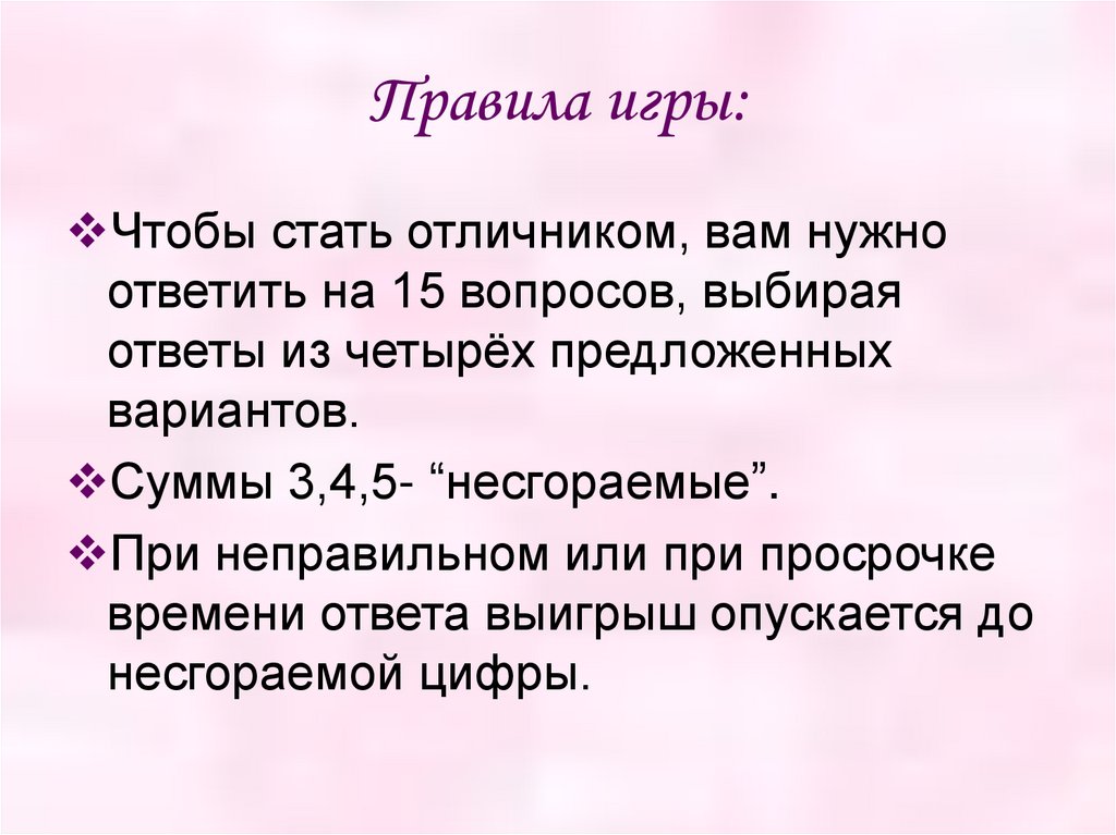 Чтобы стать отличником, вам нужноответить на 15 вопросов, выбирая