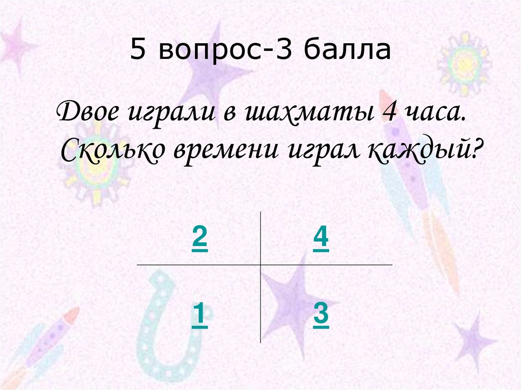 Двое играли в шахматы 4 часа.Сколько времени играл каждый?