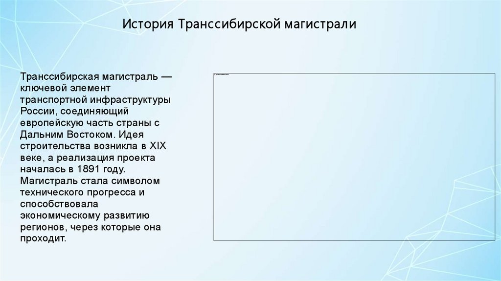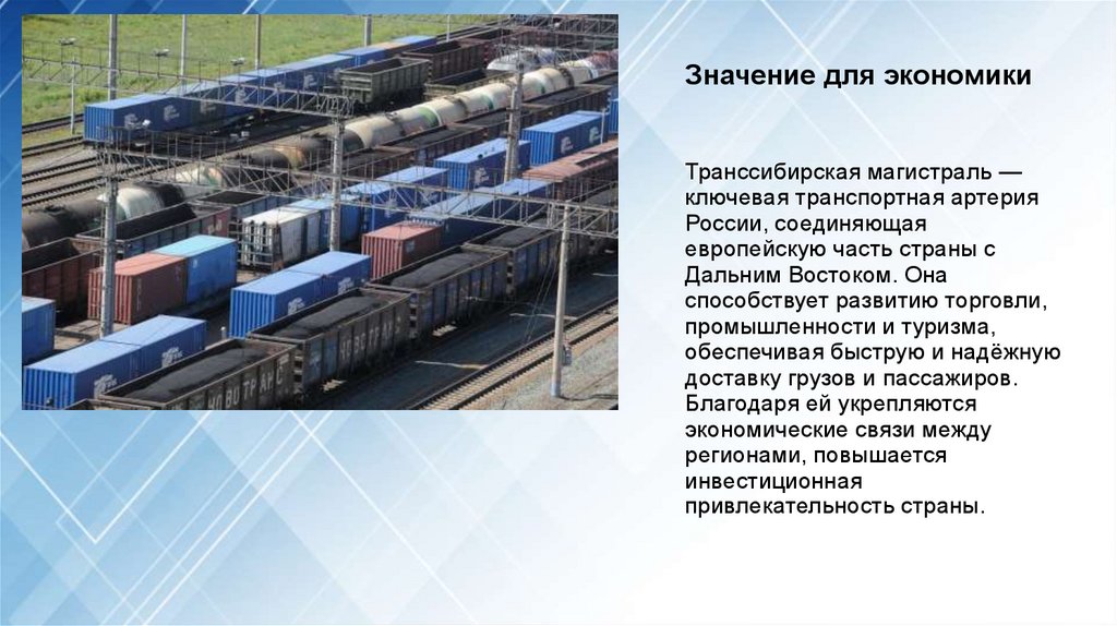 ЗаключениеТранссибирская магистраль — ключевой элемент транспортной