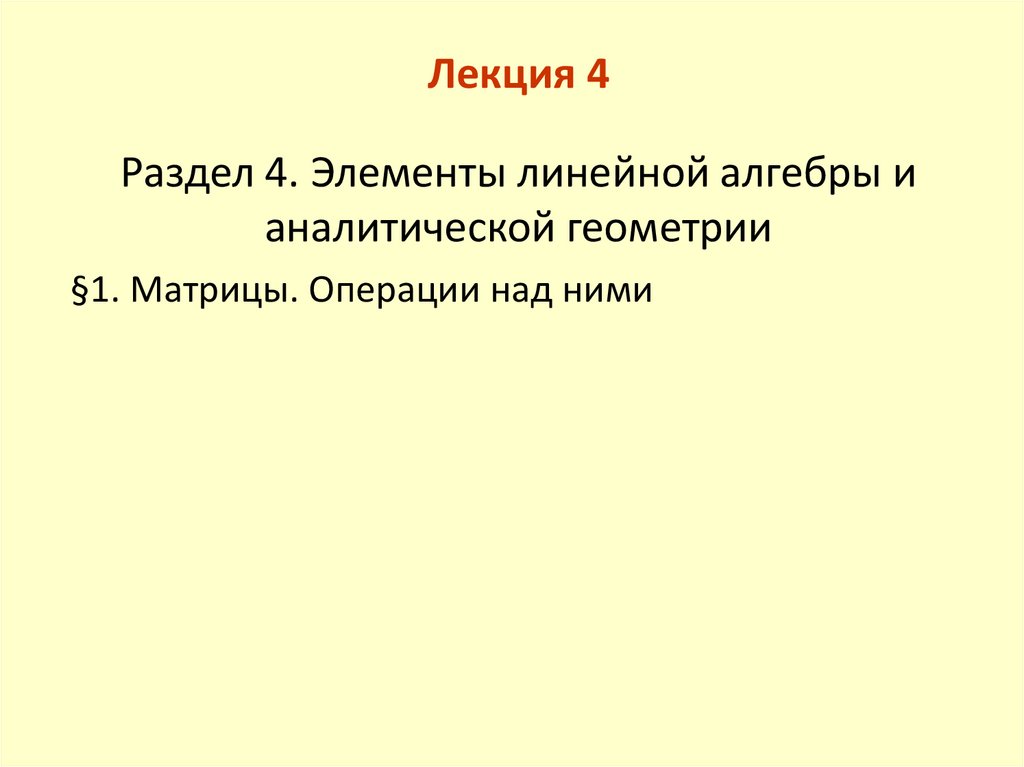 Лекция 4. Раздел 4. Элементы линейной алгебры и аналитической геометрии. §1. Матрицы. Операции над ними