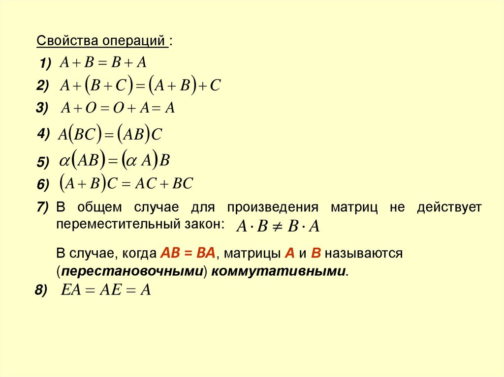 7) В общем случае для произведения матриц не действует