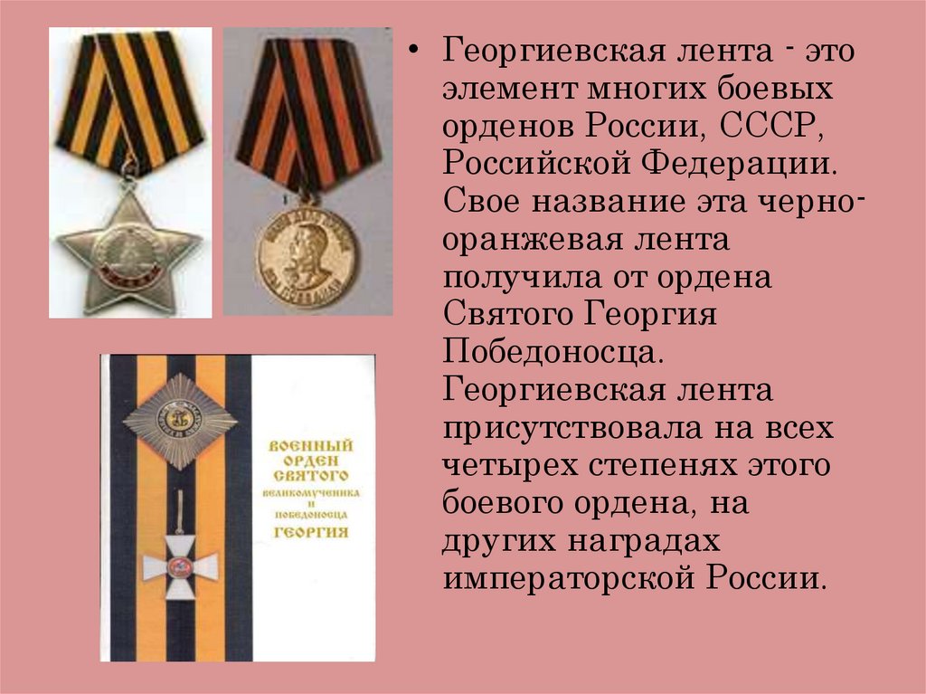 • Георгиевская лента - этоэлемент многих боевых