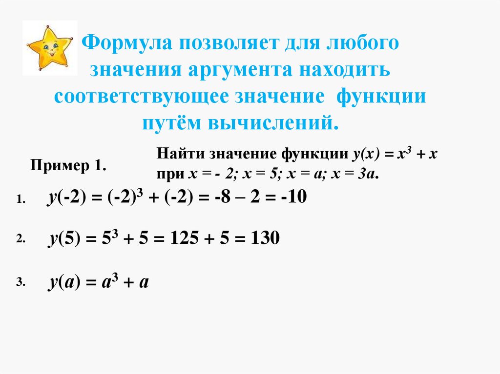 Формула позволяет для любогозначения аргумента находить