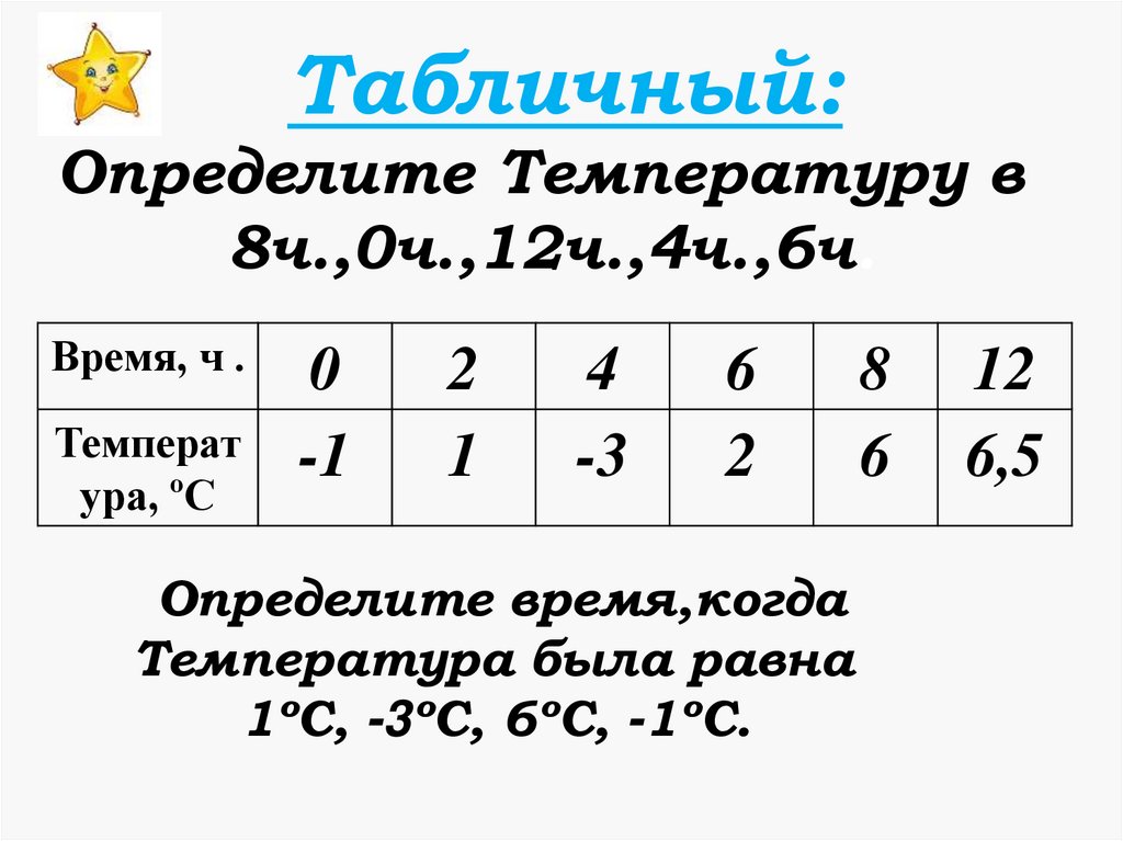 Табличный:Определите Температуру в