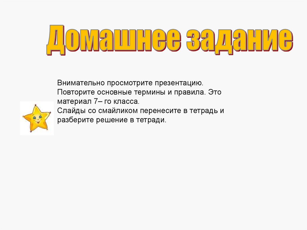 Внимательно просмотрите презентацию.Повторите основные термины и правила. Это