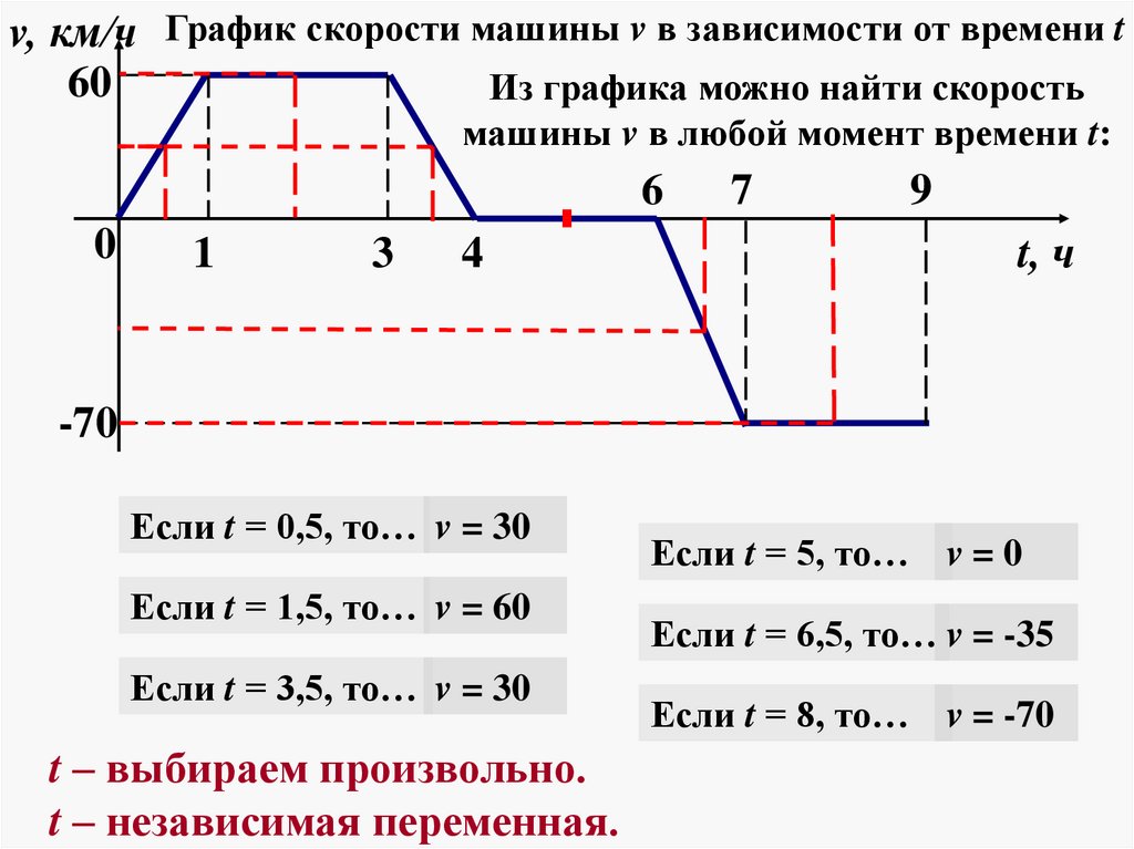 Если t = 6,5, то… v = -35