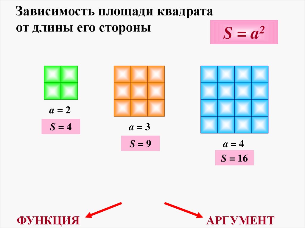 6. Зависимость площади квадрата от длины его стороны