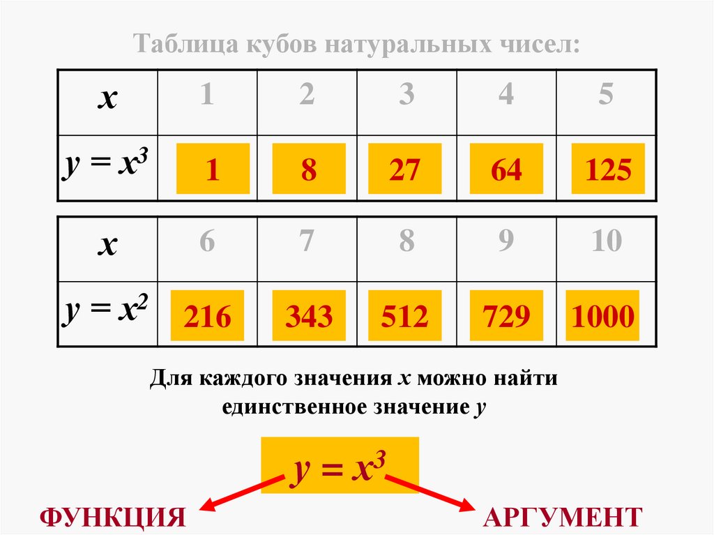 7. Таблица кубов натуральных чисел: