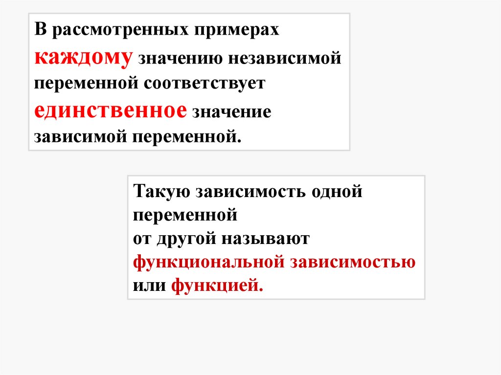 В рассмотренных примерахкаждому значению независимой