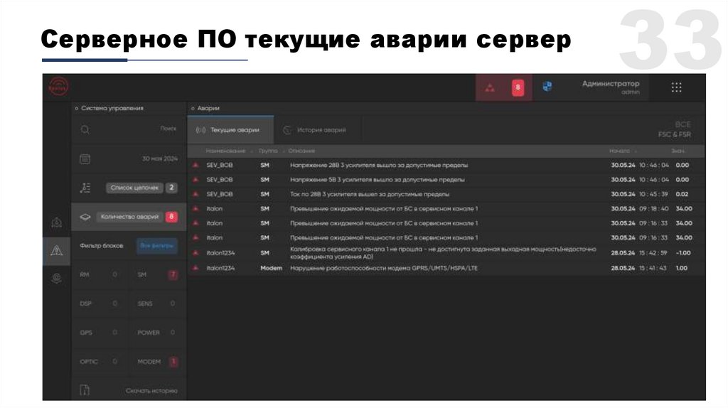 Аварийные сообщенияАнализ полученного аварийного сообщения на