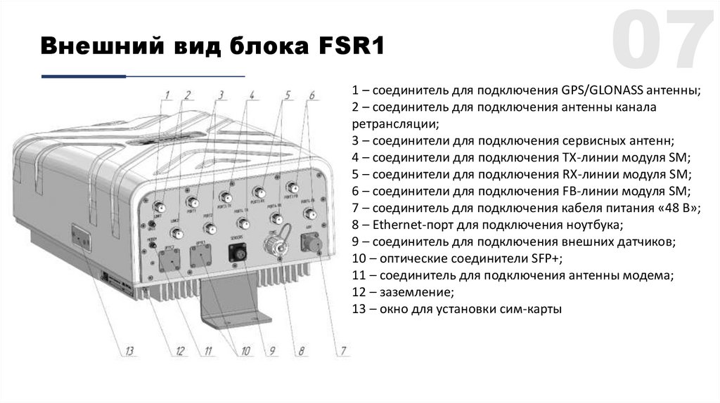 1 – соединитель для подключения GPS/GLONASS антенны;